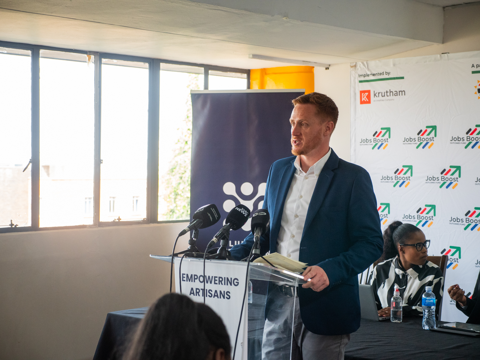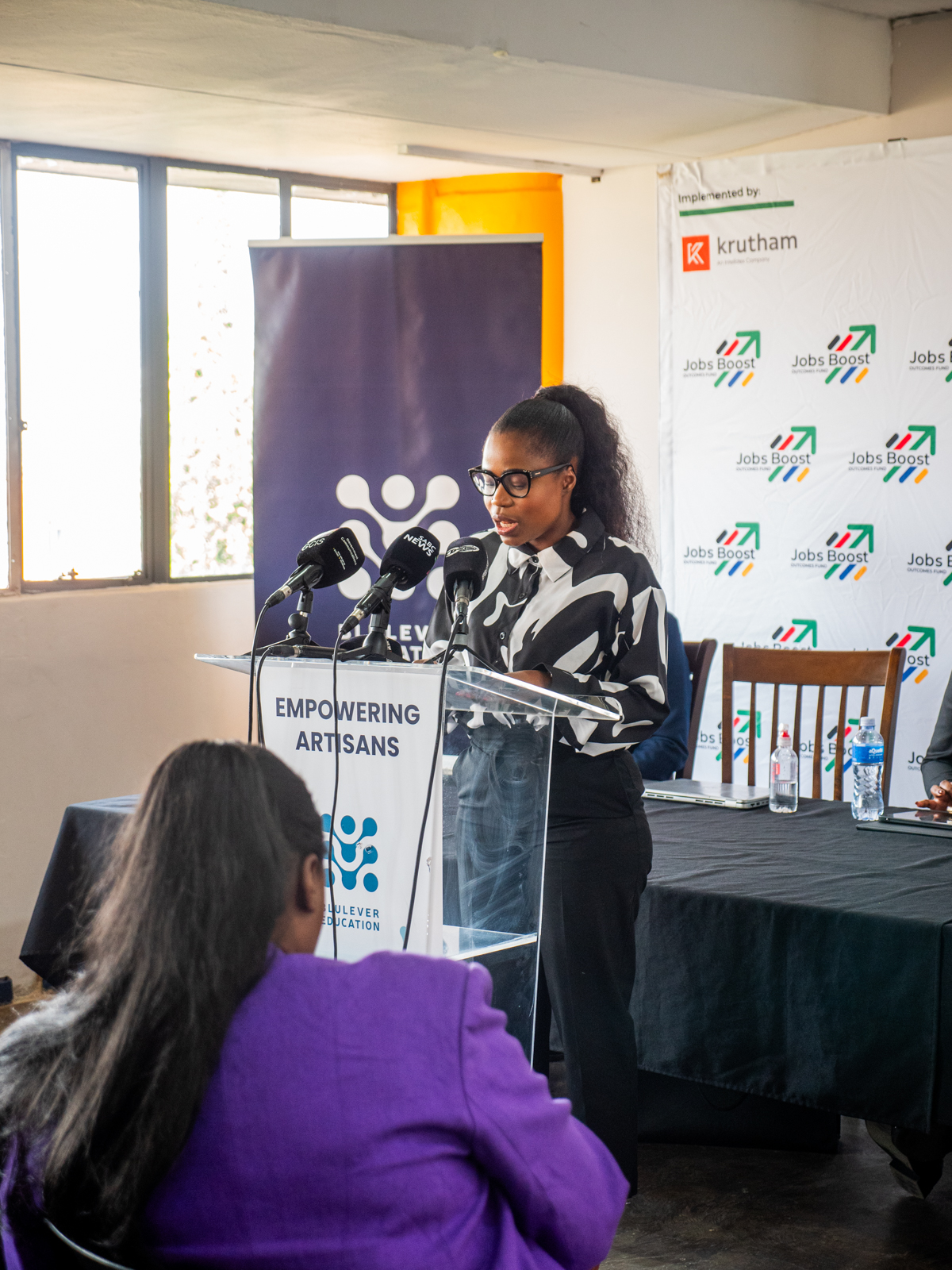 The Jobs Boost Outcomes Fund, funded by the NSF, designed and managed by Krutham as part of the PYEI, was recognised in the briefing as a growing flagship intervention. By the end of June, over 8,100 young people had been enrolled in training programmes and more than 5,400 placed in quality jobs, with R150m disbursed to 12 implementing partners for verified outcomes.